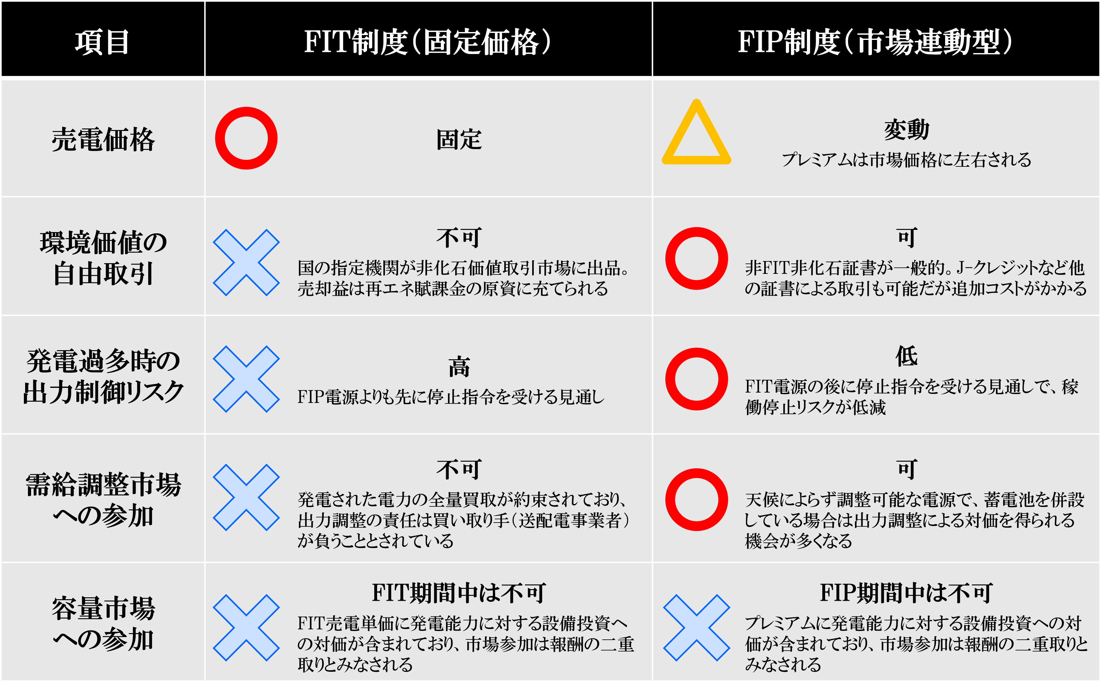FIP(Feed-in Premium)とは、再エネの経済的な自立化と電力市場への統合を目的とされた制度で、再エネ発電事業者が電力を売る際に、その売電収入に加えて、「プレミアム(供給促進交付金)」の交付を受けることができる制度です。